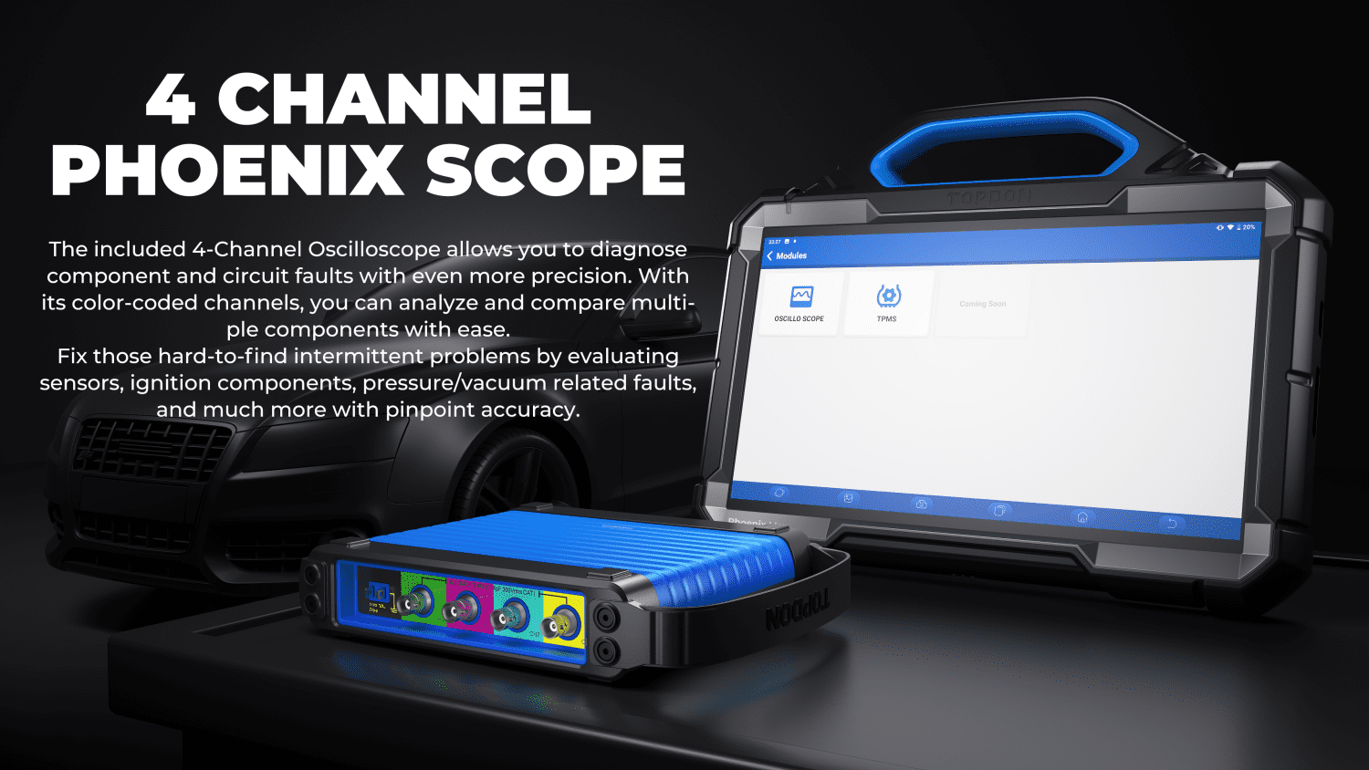 Det inkluderte Phoenix Scope lar deg diagnostisere komponent- og kretsfeil med enda mer presisjon. Med sine fargekodede kanaler kan du enkelt analysere og sammenligne flere komponenter.